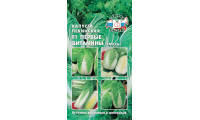 Смесь ранних (45-60 дней) гибридов для весенне-летнего выращивания в открытом и защищенном грунте для получения ранней витаминной продукции. Розетка листьев приподнятая. Лист крупный, ярко-зеленый, пузырчатый. Кочаны широкоовальные, эллипсовидные, цилиндрические, полуоткрытые и закрытые, высотой 20-30 см, массой 1,2-2,0 кг, на разрезе белые или светло-желтые, плотные, сочные. Урожайность 6-7 кг/м2. Подобранные нами гибриды холодостойки, устойчивы к стеблеванию, при раннем сроке посева быстро наращивают вегетативную массу. Являются источником необходимых организму витаминов и минералов. Используется в свежем виде, для приготовления салатов, зеленых бутербродов, в вареном и тушеном виде.